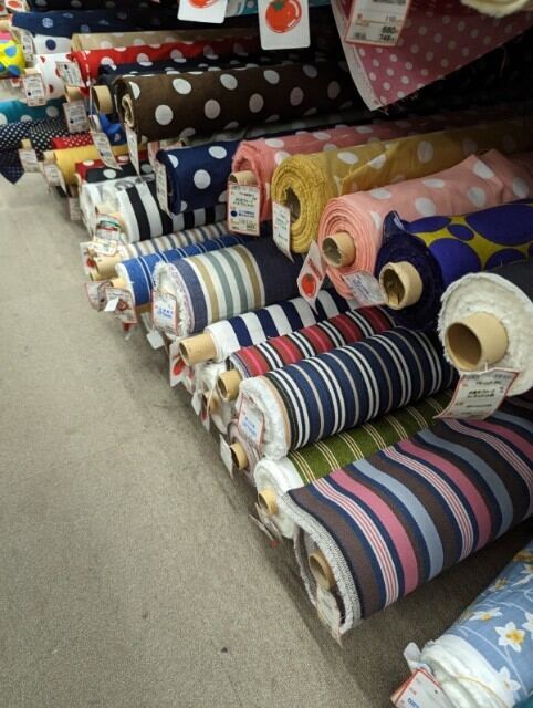 ユザワヤとかTOKAIのように店員さんに相談出来る雰囲気ではないので、事前に欲しい布(素材も量も)をイメージしてメモっておくといいと思います。