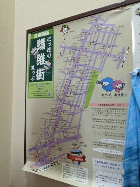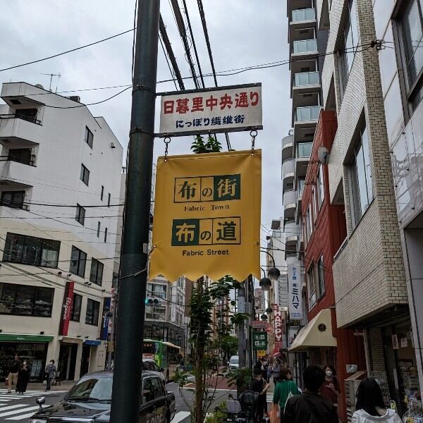 日暮里駅南口徒歩3分の日暮里中央通りに約1kmに渡って生地織物の問屋さんが軒を連ねる「日暮里繊維街」のこと。